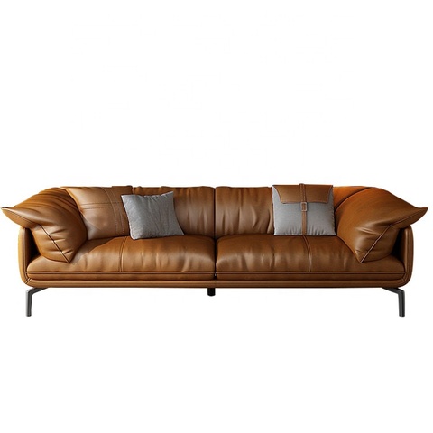 En kaliteli Modern stil büyük deri kesit kanepe L şekli 7 kişilik kahverengi buff kanepe high end